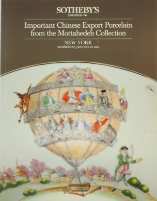 In writing the two/volume catalogue "China for the West", David S. Howard and John Ayers, in cooperation with Mr. and Mrs. Rafi Y. Mottahedeh documented, "The Mottahedeh Collection" an unparalleled private collection of Chinese Export porcelain in America. In this Sotheby's New York, sale 5281, auction catalogue, 375 objects from "The Mottahedeh Collection" are described and illustrated.