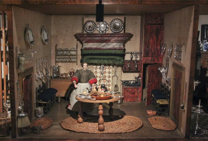 The doll’s house of Petronella Dunois (1650-1695), c. 1676, Rijksmuseum, Amsterdam, the Netherlands, inv.nr. BK-14656. Two shaving dishes are suspended on the left wall.