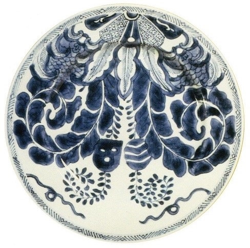 In the cargo of the Ca Mau shipwreck, c.1725 a series of five, identically decorated, dishes were found together with a series of dishes decorated with the Chine de commande 'Scheveningen design'. Both original designs were traditionally made in Arita Japan 1660-1710 for the Dutch. These dishes were so popular that Chinese potters copied them in order to compete with the Japanese. Such copies were already known, but the occurrence in the Ca Mau made it likely that these dishes that these dishes, and therefore most of the porcelain cargo, were destined for Batavia because only the Dutch would appreciate such specific Chine de commande pieces. (Amsterdam 2007, p.17 & p.179)