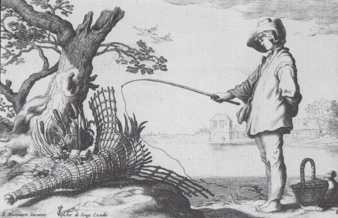The decoration on this teapot has been taken from a drawing titled 'Un pêcheur,' (The Fisherman) by Abraham Bloemaert (1564/66-1651), a Haarlem-born painter and printmaker, who specialized in historical subjects. Originally Bloemaert's design was engraved by his son Cornelis II (ca.1603-ca.1680), but the design on this teapot has been reversed, which points to the idea that it was based instead on a later re-engraving, possibly a wood-cut published by the Dutch engraver Cornelis J. Visscher de Jonge (1629?-1658?).(Sargent 2012, p.252)